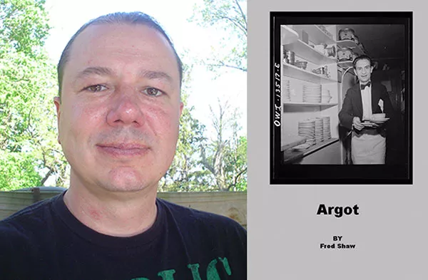 In his fine debut chapbook, Argot, Fred Shaw writes about many things: music, the humiliations of youth, a father. But as suggested by the black-and-white cover photo of a bow-tied, white-aproned waiter grinning in a pantry, about half of these 26 poems are about (or at least take place at) work.