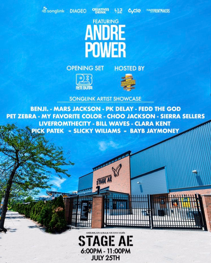 Set to perform as part of a local artist showcase from Songlink is Benji., Mars Jackson, PK Delay, Fedd The God, Pet Zebra, My Favorite Color, Choo Jackson, Sierra Sellers, Livefromthecity, Bill Waves, Clara Kent, Pick Patek, Slicky Wiliams, and Bayb Jaymoney.
