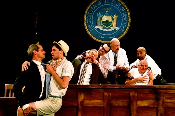 Patrick Jordan and David Whalen, as the defendant and his counsel, take bickering to new heights (literally if not metaphorically over the head of Kevin Brown as the most sensible guy in the story) and deliver new lows of anti-Semitism. Matt DeCaro controls the judge’s personality shifts, with Mark Ulrich as the hapless prosecutor and John E. Reilly as the hopeless doctor.