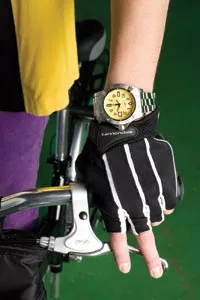 Breitling Avenger Seawolf diver’s watch, available at Orr’s Jewelers. “Classic” gloves by Cannondale, available at Pro Bikes. Credit: Heather Mull