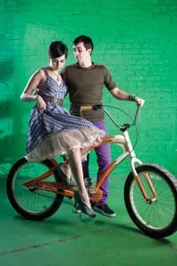 On Bahareh: Plaid “Poise” dress and “Xena” belt, available from ModCloth.com. Steven Webster “Superstud” sterling-silver and mother-of-pearl necklace and ring, available at Orr’s Jewelers. “Creamsicle” custom cruiser, available at Pro Bikes.