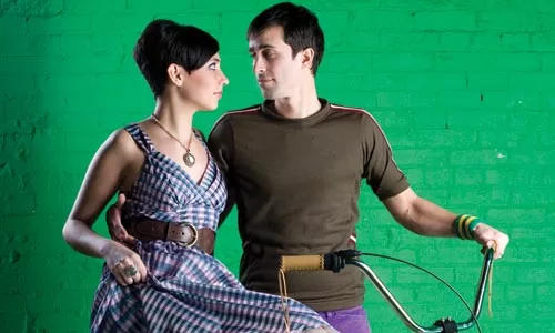 On Mike: Vintage Western shirt, available at Eons. Stretch slim slacks, available at American Apparel. Messenger bag by Timbuk 2, available at Pro Bikes. Credit: Heather Mull