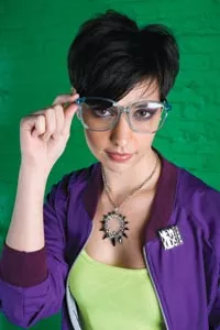 On Bahareh: Ribbed “Highlighter” tank, thermal-lined jacket and glasses, all available at American Apparel. “Dancing Queen” shorts and “New Kids on the Block” pin, both available from ModCloth.com. Stephen Webster “Superstud” sterling-silver and onyx necklace, available at Orr’s Jewelers. Credit: Heather Mull