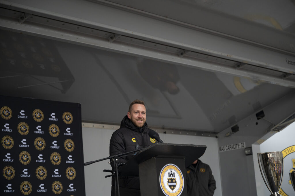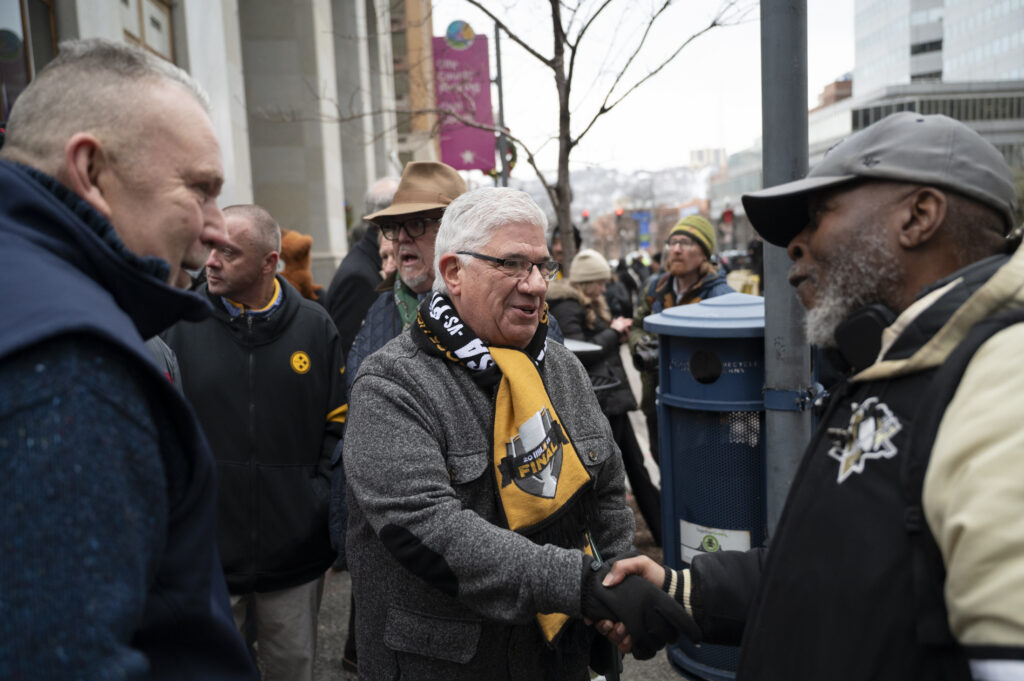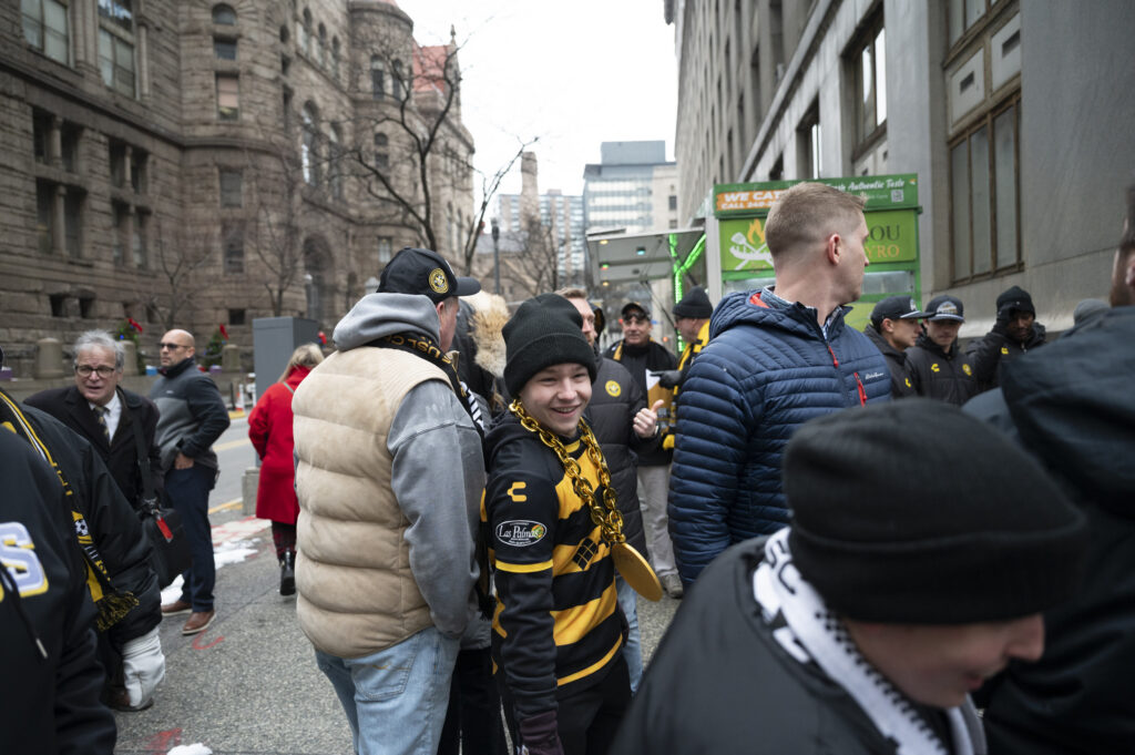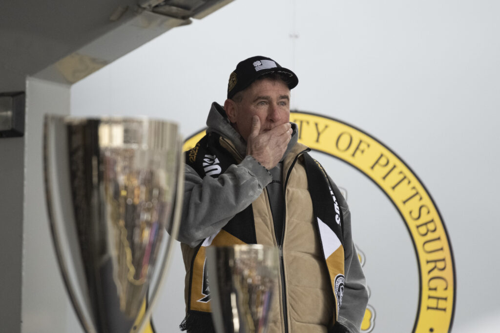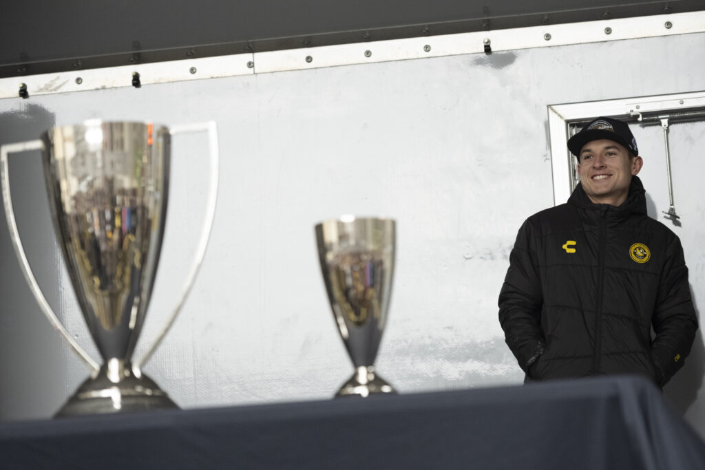 Fans of the Pittsburgh Riverhounds braved freezing temperatures this afternoon to celebrate the team’s first-ever USL championship title. Hounds’ fans, known affectionately as the “Steel Army” chanted as Head Coach Rob Vincent took the stage to give his remarks. Vincent took time to thank everyone in the crowd stating, “We as players and staff definitely need you there and we definitely hear you, particularly in the home games so it’s great you are always there to support us.” After a 25 year championship drought, the 2025 Riverhounds took home the title without allowing a single goal throughout the playoffs.
