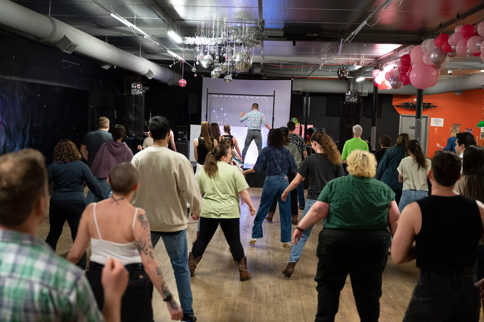 On a chill Friday night in March, Bottlerocket Social Hall becomes a honky-tonk. Past the retro, U-shaped bar, patrons dressed in variations of country western attire — some are all duded up, others don a simple cowboy hat or boots — awkwardly follow an instructor teaching the steps to an ultimate line dancing classic, the 1991 hit “Boot Scootin’ Boogie” by Brooks and Dunn. This is ’90s country night, after all.