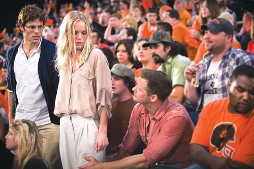 Once in hicksville, David (James Marsden) and Amy (Kate Bosworth) are deftly taunted by five guys led by her ex (Alexander Skarsgård, way too pretty for his role), who eventually rapes her and shares his catch with a friend. One contrived twist leads to another, until David gets mad as hell and can’t take it anymore. Then, out come the guns — and the climactic bloodbath of a siege.
