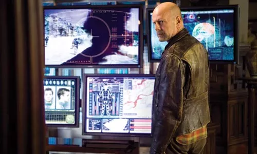 In the near-future, folks are living fabulous lives. Thanks to a nifty invention originally designed to help the physically disabled, everybody can just lounge around in jammies hooked up to a machine, while their robotic surrogates live life for them. The surrogates are so universally good-looking that crime has plummeted. (This isn’t fully explained, but maybe everybody just feels better about themselves.) But when the surrogate of a high-profile human is murdered (circuit-fried, really), and the human dies too, that signals new trouble. Enter FBI agent Greer (Bruce Willis, who has to wear a lot of make-up and fake hair to play his own “perfect” surrogate). The obvious suspects are from the meat world, those few humans who eschew surrogates and seek revolution. So, Greer de-surrogates, and starts to crack a giant corporate conspiracy. Jonathan Mostow’s sci-fi-ish actioner is adapted from Robert Venditti and Brett Weldele’s graphic novel. There’s enough thematic veneer — humanity vs. robots, out-of-control technology — to keep this pulpy story afloat. After playing this gruff cop role for 20-plus years, Willis is completely believable … as a guy playing a cop. Surrogates moves quickly — it’s 86 minutes, the perfect length for a familiar but mostly satisfying piece of dystopic entertainment.