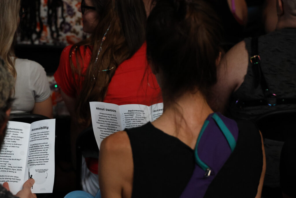 Audience members look over the program at Cirque Erotique, a fundraiser for SWOON Alliance. Photo by Jeff Cooper