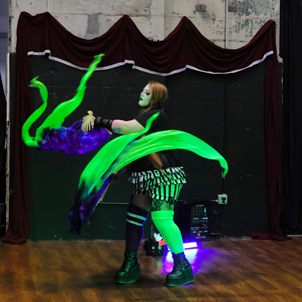 Evie Sanguine (@eviesanguine) spins fans. Photo by Jeff Cooper