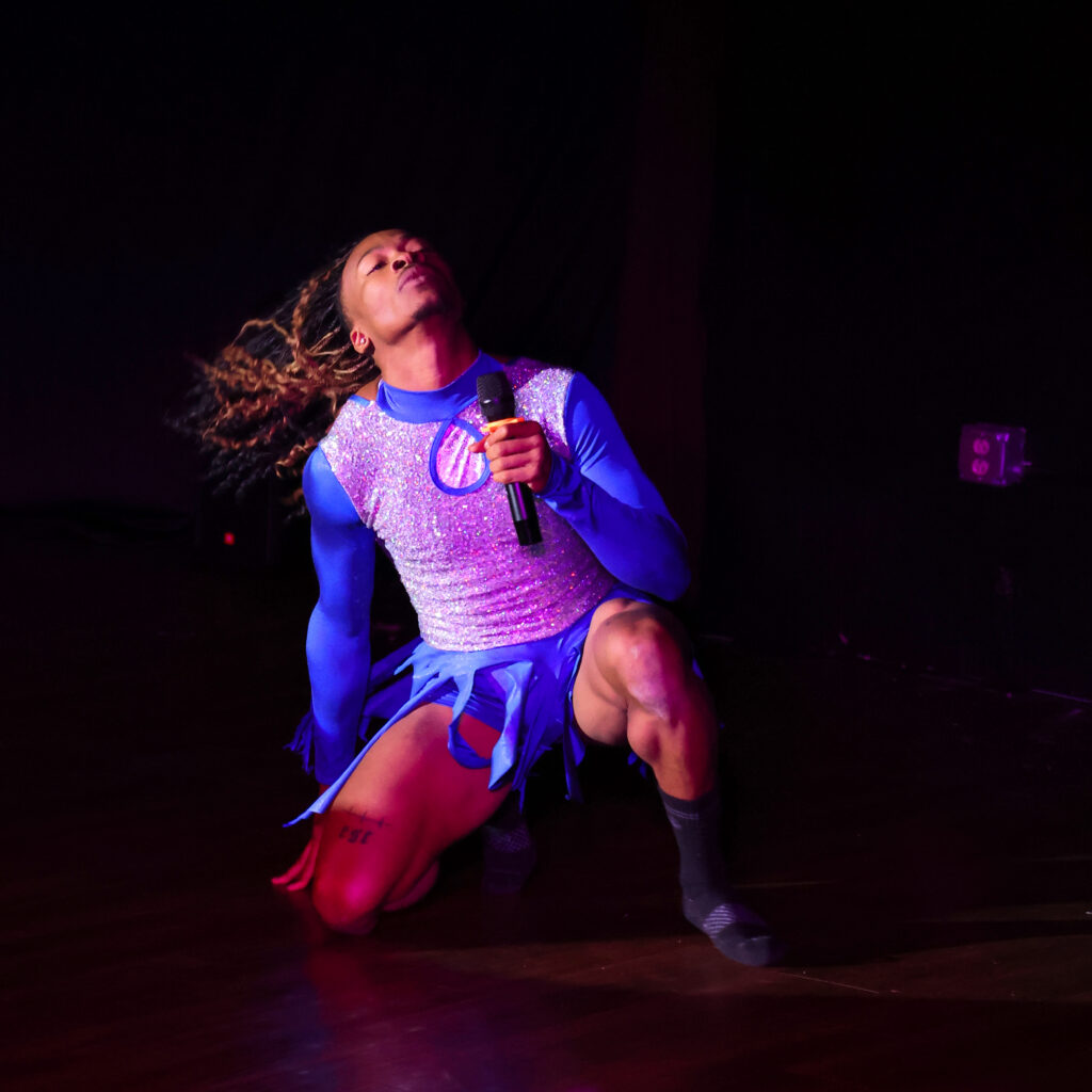 Hot Toddie (@hottoddiecartoonqueer) smiles before stepping on to a piece of glass. Photo by Sage