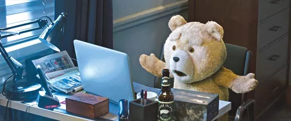 The gang from the hit Ted — director Seth MacFarlane, actor Mark Wahlberg, the animated toy bear Ted (voiced by MacFarlane) and the surprise inclusion of “Buck Rogers” — got lucky. The 2012 comedy was low-brow, raunchy and went on too long, but it found enough freshness in its central gag — Ted is a foul-mouthed, pot-smoking, loser teddy bear who doesn’t care who knows it — that it more or less worked and delivered laughs.