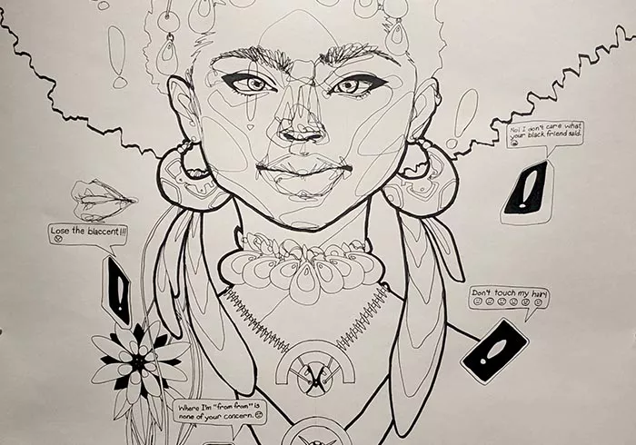 “My heart has always been with the arts. And so, for a while, I did spoken word poetry as a profession. Eventually, I started doing my visual arts and including words in it, which I still do to this day, and now I do art full time,” he says.