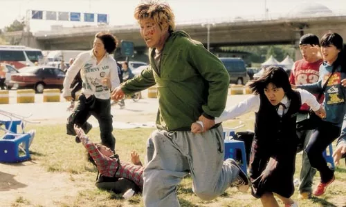 The film then jumps to the present, when, on an otherwise peaceful afternoon, the Han disgorges a spectacularly mutated amphibious creature that runs amok on the riverbank, snatching up picnickers. Among its victims: 13-year-old Hyun-seo (Ah-sung Ko). Soon, her dysfunctional but anguished family, led by her too-accommodating grandfather (Byun Hee-bong), are hustled off by men in bio-hazard suits to be quarantined: The monster may also be spreading a virus, or so the men in uniform say. Such is our contemporary culture of state-ordered fear in the face of such paper tigers as SARS or terrorism.