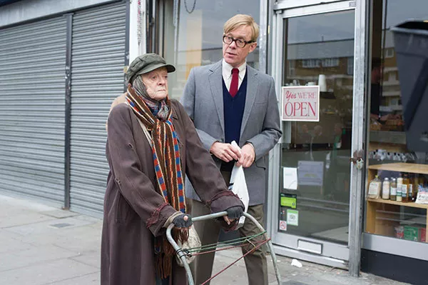 This “mostly true story” begins in 1970, in the Camden Town area of London. Playwright (and confirmed bachelor) Alan Bennett (Alex Jennings) moves into the up-and-coming boho neighborhood, and discovers a fixture on his street: a homeless woman known as Mary (Maggie Smith), who lives in a van. Mary is just barely tolerated by the residents; they are proud of being liberal and can’t risk complaining too much. Bennett proves more of a pushover, and in time, Mary and her van are ensconced in his driveway, “just until you get sorted out.” And there she stays for 15 years.
