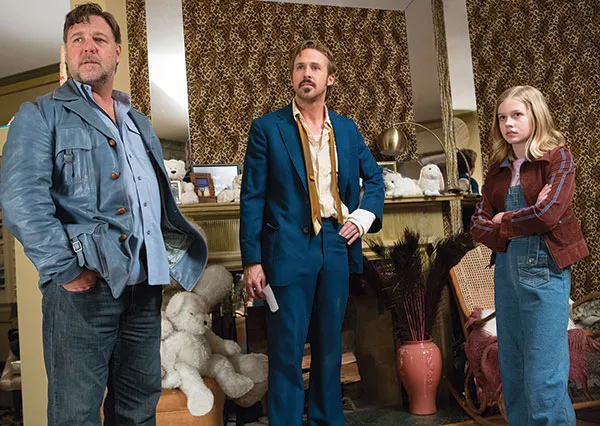 The hunt is just an excuse to pilot these two — plus March’s 13-year-old daughter, Holly (Angourie Rice) — through the aforementioned grimy L.A. of porn shops, plastic diners, shag-carpeted homes and a bowling alley. There’s an intentionally convoluted plot that includes all of the above, plus gangsters, the Department of Justice, Detroit auto-makers, two fancy parties and killer bees.