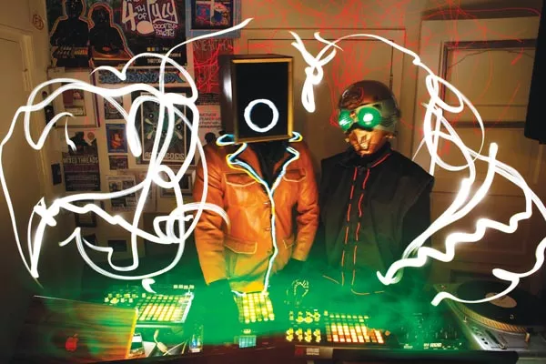 That goofy nonchalance can be felt at every creative step the pair take, producing a galvanizing energy that has fostered more of an artistic community than a music-scene war zone. While their roots are in hip hop (a genre that today, with its currency of blinged-out braggadocio, looks like it could use a coup d’état), the duo’s tastes range from The Doors to acid jazz. They take that hodgepodge of samples and use them like paints on a canvas — never planning, just going with the flow.