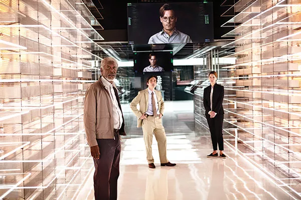 As artificial-intelligence researcher Dr. Will Caster (Johnny Depp) faces death, he lets his wife, Evelyn (Rebecca Hall), and buddy (Paul Bettany) upload his brain into his AI thingamabob. (This mind-draining hook-up takes place in an abandoned school gym because ruin porn.)