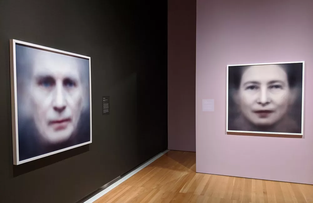 Heading up the gallery are two works pointing to how facial recognition technology denies us our humanity and individuality through Eigenface, a method defined simply as a machine creating a single face from reading and combining multiple images. From that perspective, the prints demonstrate how, to a computer, two of history’s most respected intellectuals, French writer Simone de Beauvoir and playwright Samuel Beckett, are nothing more than a collection of pixels.