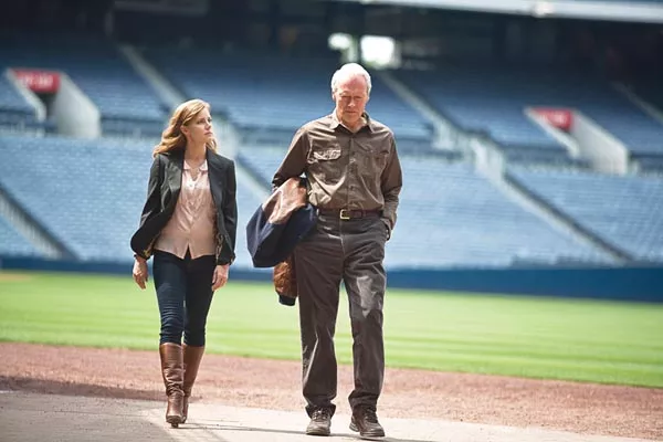 A listless Amy Adams plays Gus’ semi-estranged lawyer-daughter, who goes with him to scout a pudgy young power hitter, and Justin Timberlake is a charming rival scout who romances her. The story — which would fail a college fiction-writing class — has the kind of contrived resolutions you’d expect to follow such contrived conflicts. A banal entertainment, it has nothing to say, and neither does its star, who should just stop talking.