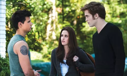 On the upside, there’s less moping, a fresh set of good-looking vampires, and the usual dose of pretty Pacific Northwest scenery. Taylor Lautner, who stars as the deliciously shirtless werewolf, Jacob, is more engaging this time out. On the downside, Robert Pattinson (vampire Edward) and Kristen Stewart (human Bella) seem more wooden than ever. (There’s a reason the film has to endlessly remind you that these two are soulmates.)