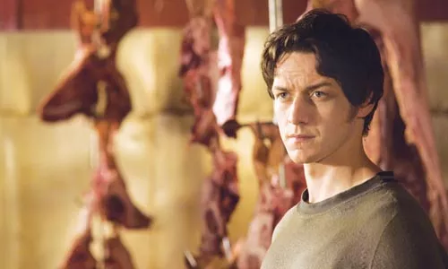 James McAvoy (Atonement) portrays Gibson, a directionless sad-sack, who, on one lunch hour, is whisked away by a beautiful, gun-toting, fearless woman. He winds up at the headquarters of an ancient guild of weaver-assassins known as the Fraternity. (Yes, weavers: It will, in time, make a certain kind of comic-book sense.)