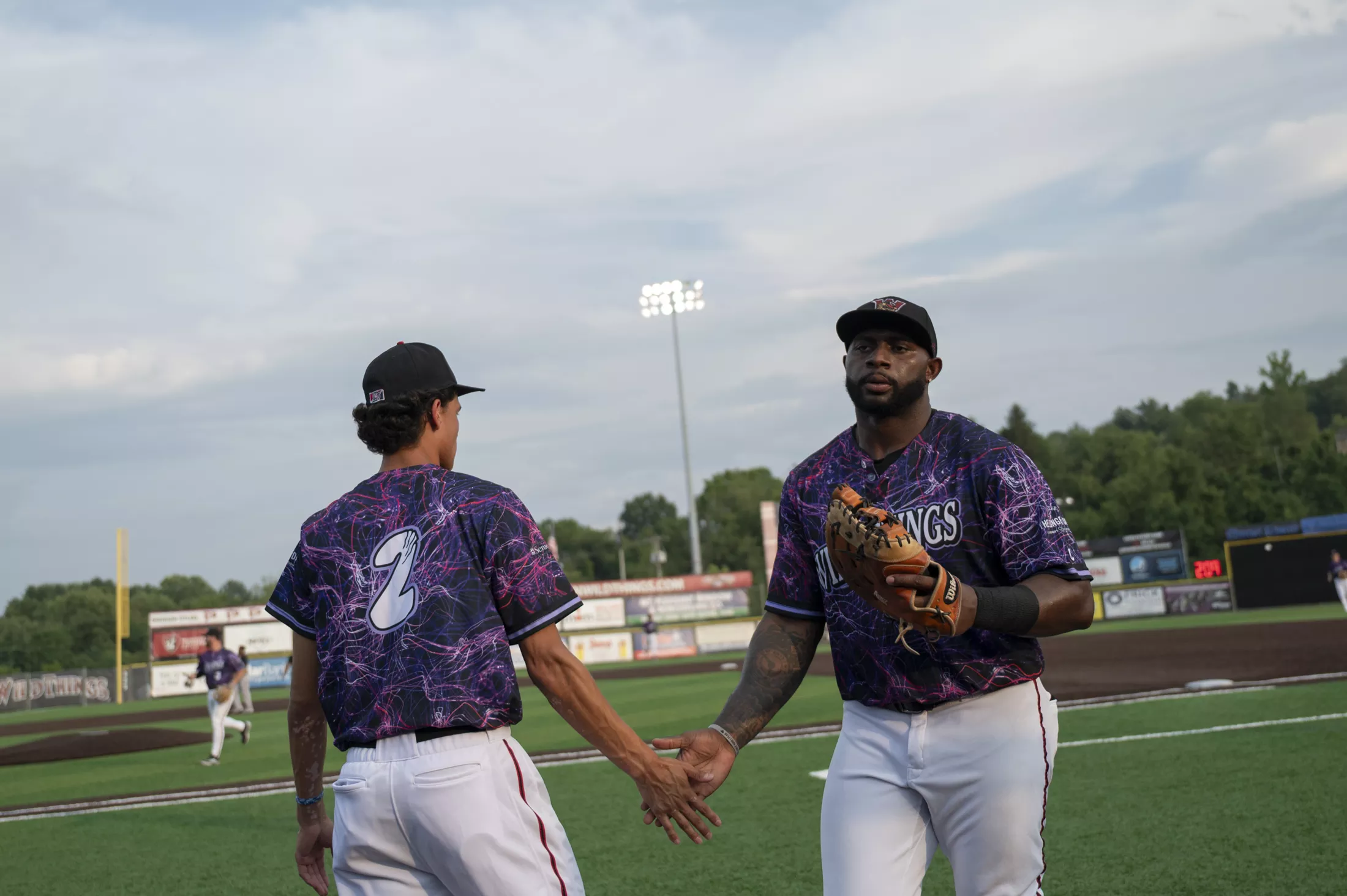 Thompson notes the Wild Things’ “soul-crushing championship losses,” including to the Schaumburg Boomers in 2021 and the Québec Capitales last year. But the team has racked up a dozen playoff appearances and nine division titles since 2002 (that’s five and four, respectively, since the Pirates’ last playoff appearance in 2015). Despite giving up a run in the top of the third, the team comes roaring back in the bottom half of the inning with a walk and four singles.