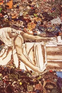 Lucy Walker’s documentary tags along as artist Vik Muniz returns to his native Brazil, and engages workers at Rio de Janiero’s massive landfill in an art project. Muniz photographs these catadores — they pick through the trash for recyclables — then, with their help, re-creates the photos as giant mosaics using trash. (Pictured: A junk-filled portrait of Tiao, who is compiling a library of classics found in the trash, jokingly posed as the slain Marat.) The risk is fetishizing or exploiting the poor in the name of “art,” but Muniz is surprisingly sensitive, and the catadores enthusiastic. It’s not just that the proceeds will benefit their union; the workers also delight in the dignity and beauty Muniz finds in both their spirit and their work. The final artworks are impressive, but Walker knows the people in them — who fill the canvas with their hopes and sorrows — are the film’s real stars. In English, and Portuguese, with subtitles. Starts Jan. 21. Oaks