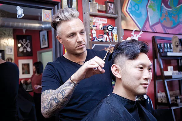 “This is the best job I’ve ever had,” says barber Ali Lorenzini. “I basically work with my best friends and cute guys all day.”