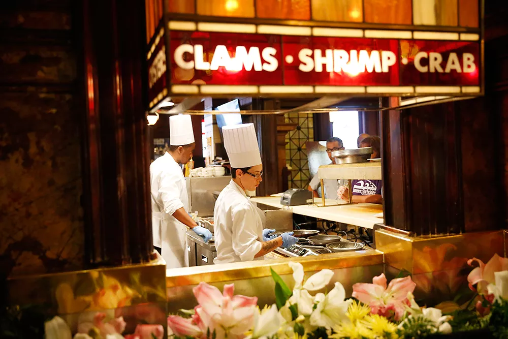 Chalk up the high-class atmosphere to the building’s old-school architecture and the restaurant’s commitment to keeping the traditional interior decoration intact. It was built as the Pittsburgh and Lake Erie Railroad Station in 1901 (the letters P&LRR still sit on top) with a palpable 19th-century architectural influence: high arches, wood paneling, ornate columns, warm lighting provided by throwback street lights and chandeliers. The building was listed on the National Register of Historic places in 1974 and even though the space was renovated in the late 1970s by restaurateur Chuck Muer, he kept the early 1900s train station personality alive, and not just in the name. Walking down the stairs into the main dining room, it kind of feels like walking onto the Titanic, except, you know, with a happier ending.