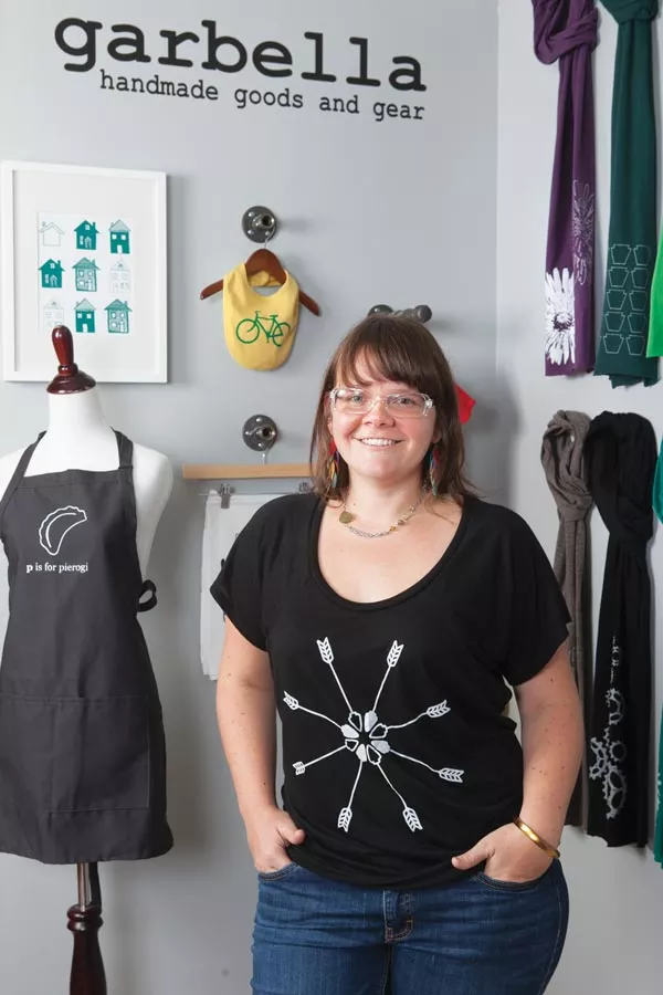 Pierogies, bike parts, typewriters — they’re all part of Garbark’s aesthetic. The lifelong Pittsburgher, and former full-time art teacher, has been selling handmade goods (mostly screenprinted clothes and accessories) since 2006. Two years ago, it became her main gig.