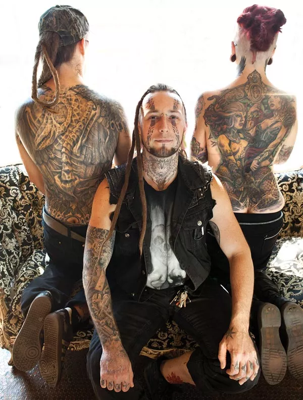 Angst’s career has tracked the growth in tattooing as a whole. “When I started in the mid-to-late-1990s,” he says, many people “didn’t really know what was possible with the art form.” But today, tattooing has come into its own as an art form, and even a life choice. “We’ve been striving to build an education about what it means to be a heavily tattooed person — how it defines you in society.”