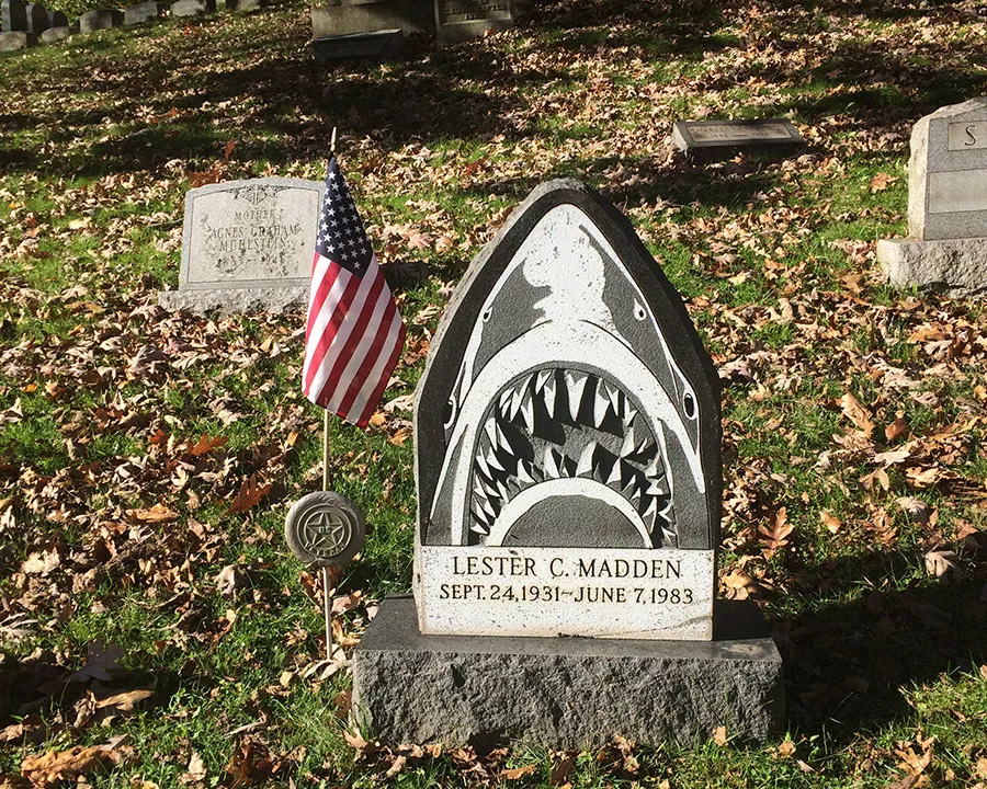 Have you ever loved a movie so much, you wanted to be buried with it? Lester C. Madden, a Korean War veteran and apparent Jaws superfan, died in 1983 and is forever commemorated with a realistic shark stone. Cemeteries are naturally serious, and this headstone is so unexpected that it leaves all others looking overly morose. More gravestones should be fun. This is what will mark your body forever, where you family has to trek to visit you! If you have the means, why not get a little zany? If I had a gravestone based on a movie, it would be the M&M pizza from The Princess Diaries.