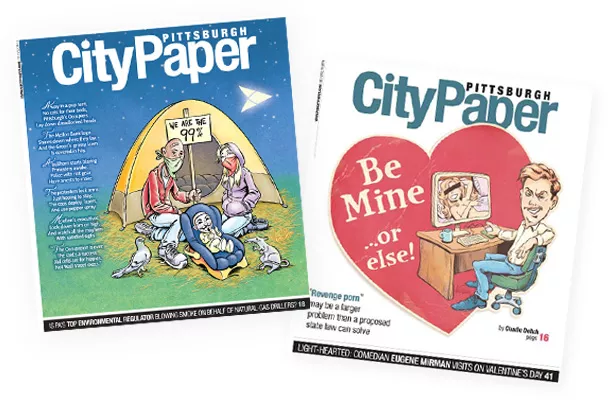 That eagerness is one of the reasons Vince is so much fun to work with. Having someone getting excited about the projects you assign out doesn’t just make our jobs easier, it really shows in his work. Vince, who lives just south of Pittsburgh and shares a studio with an “attention-starved cat,” is an award-winning cartoonist: His web comic Untold Tales of Bigfoot won an esteemed Reuben comics arts award for Best Online Comic, Long-Form. This week’s Election Guide is his 10th cover for us, but not the first to feature a controversial figure. We talked to him over email about political cartoons and his first City Paper hate mail.