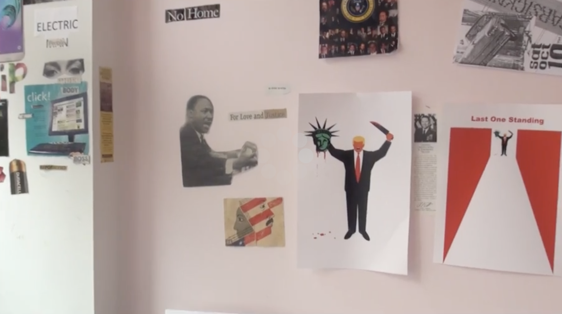 Speaking out against injustice is an integral part of this culture, and Non-Punk reflected that political edge. The gallery featured an outlet for modern-day punks who walked through and felt the need to contribute. The front window space was filled with cutout newspaper and magazine collages with a message to society. One anonymous artist pieced together clippings that read, “create a better choice for everyone, stay calm, settle differences.”