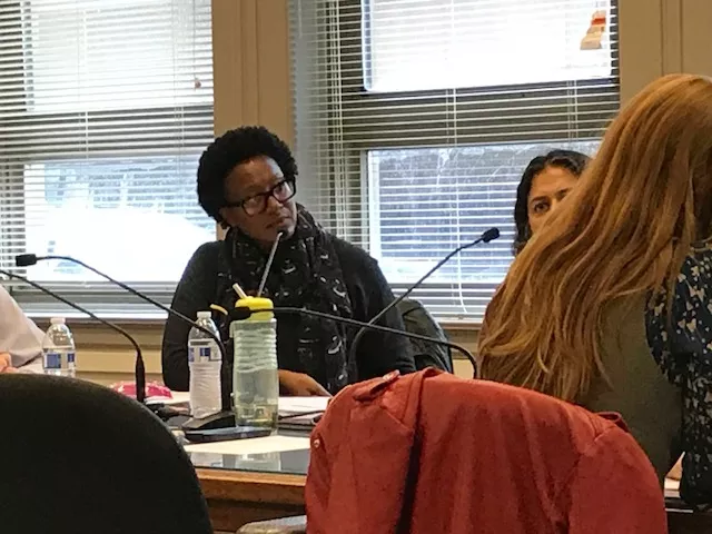An Oct. 4 art-commission hearing included public comment from about two dozen speakers, most of whom advocated removing the statue from public view. (About half the written comments received by the commission also favored removing or relocating the statue.) Among those Oct. 4 speakers was Brittany Felder, who also attended yesterday’s session and was pleased by the unanimity of the vote.