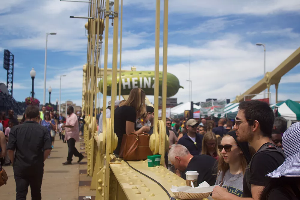 Nearly 300 people packed onto the bridge at the start of the festival, on Friday, and crowds grew as the weekend progressed. Humidity and a high chance of rain could not keep Pittsburghers away from their beloved pickles.