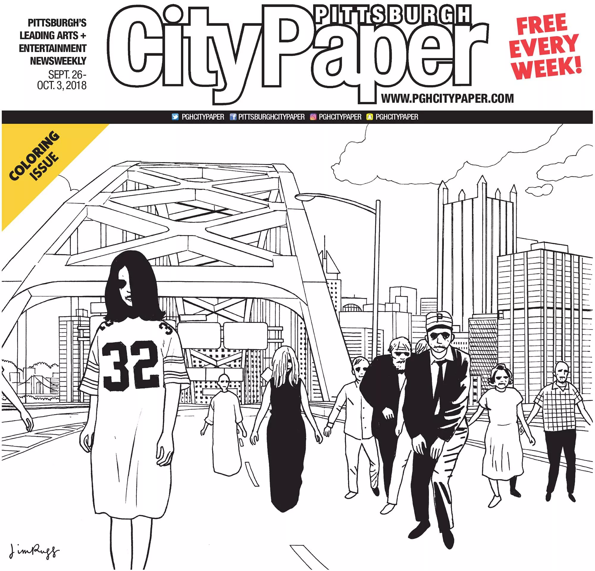 I admit it. I’m addicted to zombies. Add a zombie to a movie, and I’ll watch it. Add a zombie to a book, and I’ll read it. When CP senior writer Amanda Waltz pitched the idea of doing an oral history on the Night of the Living Dead’s 50th anniversary, it was an easy decision to make zombies the theme of this year’s Coloring Issue. Add a zombie to a Pittsburgh City Paper cover? Boom! It makes my Top Covers of 2018 post.