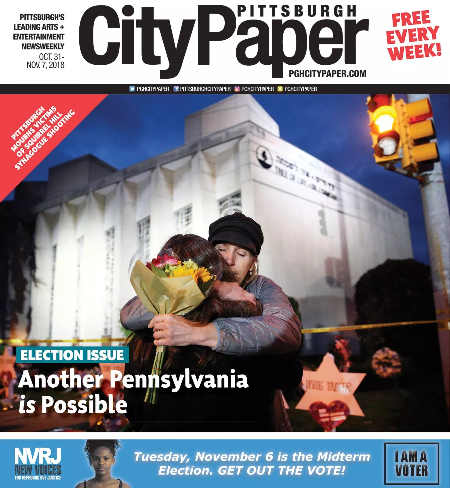 Several days before going to print on our Election Issue this October, tragedy struck our city: a mass shooting at Pittsburgh’s Tree of Life synagogue. The cover we initially had planned — an optimistic, hopeful smiling photo of Summer Lee, the first Black female state legislator from our region — suddenly no longer made sense while the city was in mourning. Jared was on the streets day and night covering the tragedy and provided the beautiful last-minute cover photograph of women embracing in front of the memorial outside the synagogue.