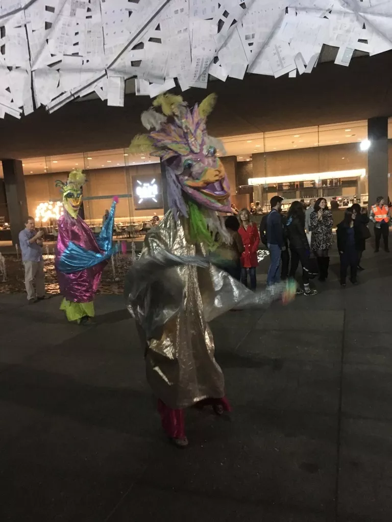 Giant puppets at the Busnegie party. Credit: Photo: Amanda Waltz