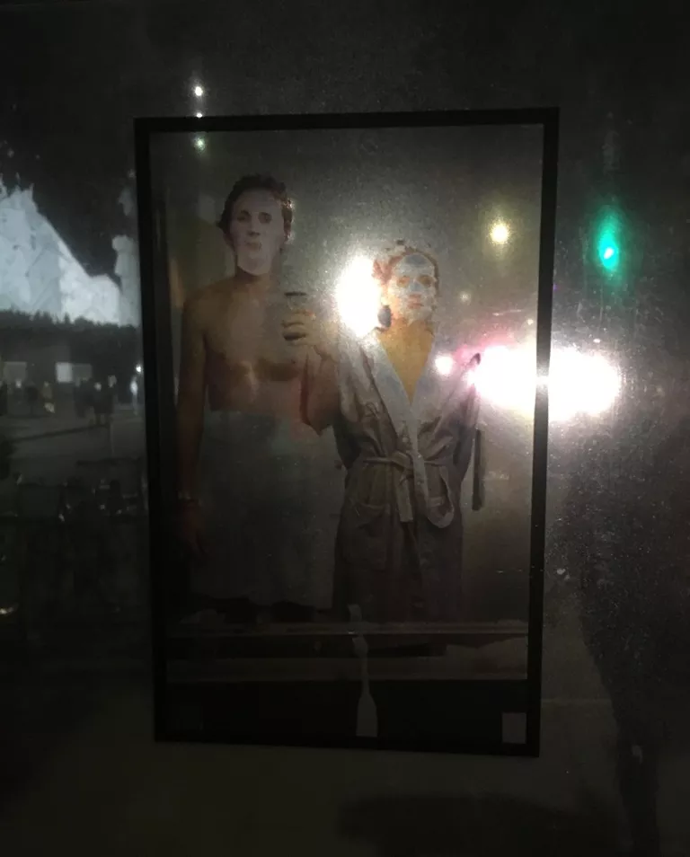 To make Busnegie happen, Werder obtained grants to buy the ad space in the bus shelters. Now commuters are surrounded by translucent prints (think of the plastic sheets teachers used on school projectors) of works by over 30 area artists. An installation by Patrick Schmidt and a sculpture by Ryder Henry are also on display.