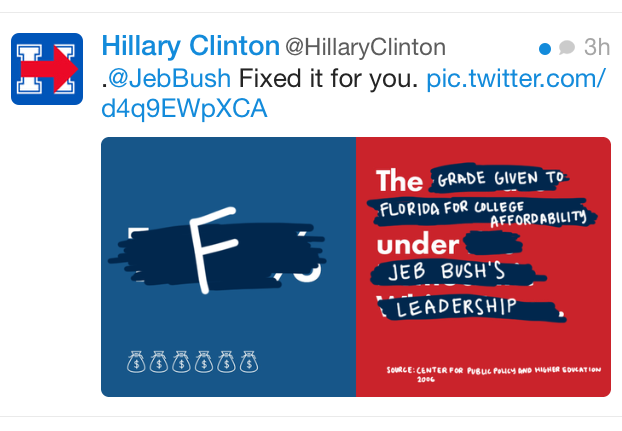 Hillary Clinton and Jeb Bush enjoyed an evening of defacing each other’s graphics.