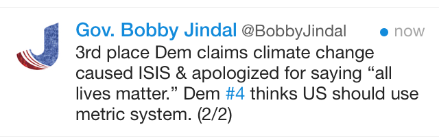 Bobby Jindal tried to get it going Democratic primary contender Lincoln Chafee whose big crime is supporting the metric system.