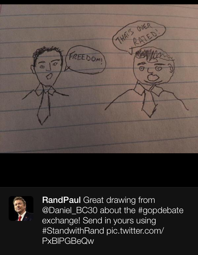 Rand Paul asked fans to send in artistic renderings of last week’s debates, and retweeted some.