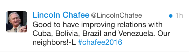 Lincoln Chafee continues to focus on other things. (Also: Some of these “neighbors” are pretty far away.)