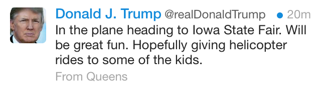 Trump didn’t even bother pretending to be country at the fair, and pimped out his private helicopter.