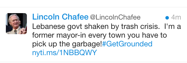 Lincoln Chafee continues to file opinions on topics completely unrelated to the campaign. This week: the garbage crisis in Lebanon.