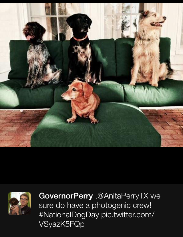 And to wind up a tough week, here’s a cute photo of Rick Perry‘s dogs. Wiener dog, y’all!