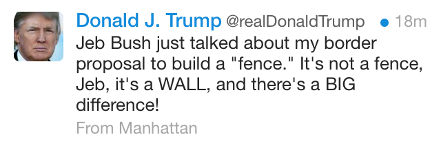 Trump spent the week smiting various foes, but here’s two opinions I concur with. Running as “Jeb!” is a weird PR choice, and yes, a wall is not a fence.