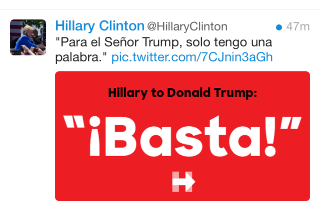 Hillary Clinton mom-yelled at Trump en Espanol.
