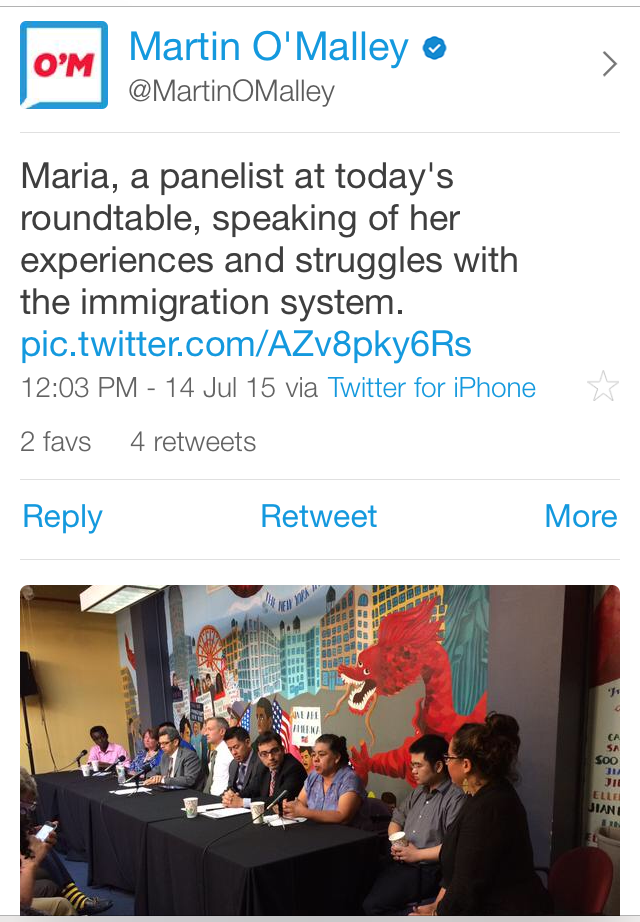 On the O’Malley trail, an immigration panelist was backed up by a dragon (probably in this country illegally).